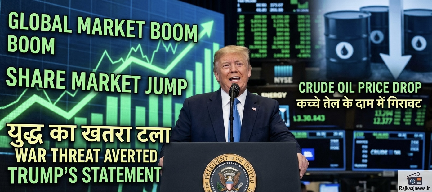 अमेरिकी राष्ट्रपति डोनाल्ड ट्रंप के एक सधे हुए बयान ने दुनियाभर के शेयर बाजारों और निवेशकों को बड़ी राहत दी है। ट्रंप ने ईरान के साथ चल रहे तनाव को कम करने का संकेत दिया है, जिसके बाद कच्चे तेल की कीमतों में भारी गिरावट आई और अमेरिका से लेकर यूरोप तक के शेयर बाजारों में शानदार उछाल देखने को मिला।