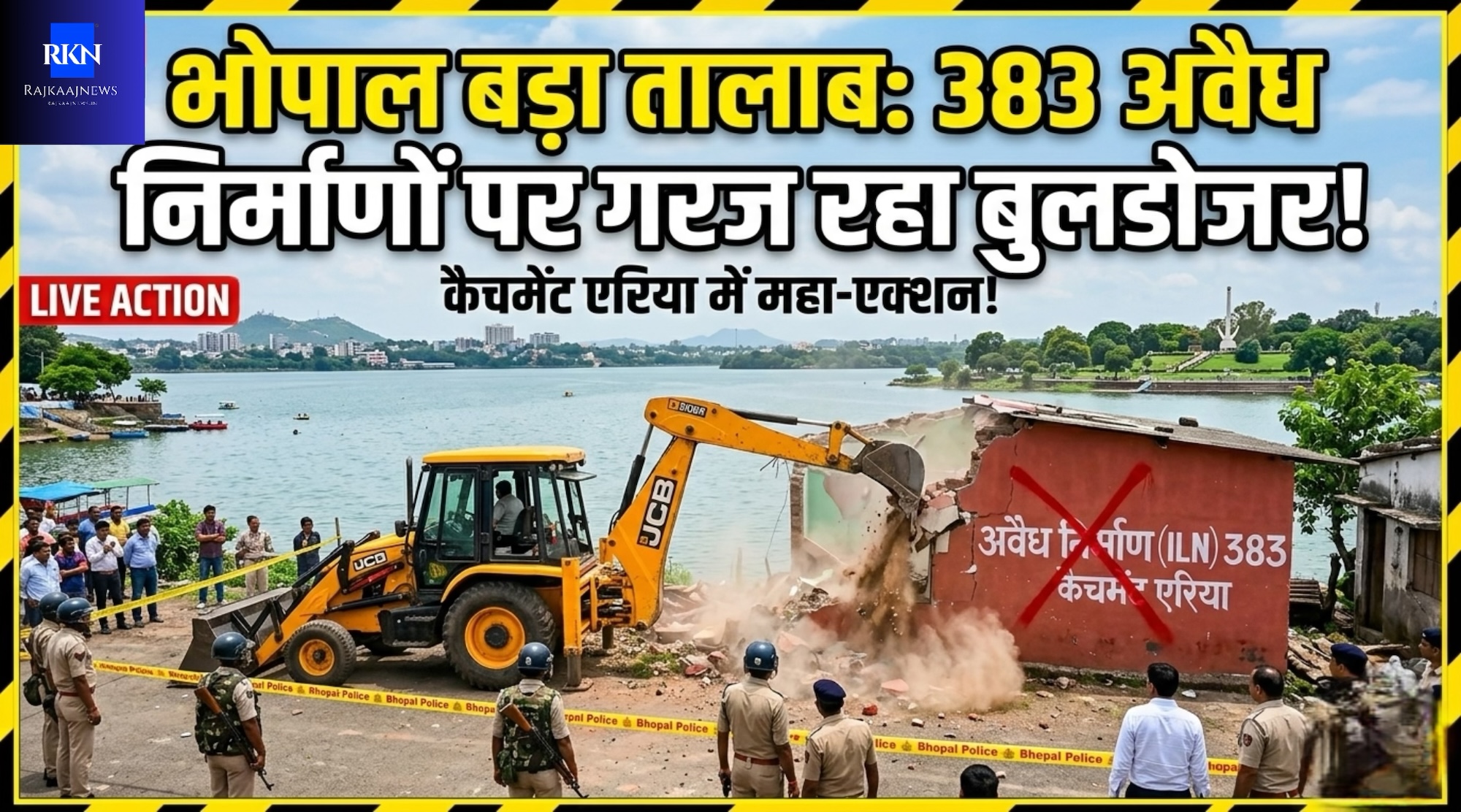 NGT के आदेश के बाद प्रशासन सख्त, ‘लाल निशान’ मिटाने वालों के घर बिना नोटिस के तोड़े जाएंगे। भोपाल । मध्य प्रदेश: राजधानी भोपाल की शान ‘बड़े तालाब’ (Bada Talaab) को बचाने के लिए प्रशासन ने अब तक की सबसे बड़ी कार्रवाई शुरू कर दी है। आज, 6 अप्रैल 2026 से तालाब के कैचमेंट एरिया (Catchment Area) में अवैध रूप से बने फार्महाउस, मैरिज गार्डन और पक्के मकानों पर एक बार फिर से प्रशासन का बुलडोजर गरजना शुरू हो गया है। क्या है पूरा मामला? NGT (नेशनल ग्रीन ट्रिब्यूनल) के सख्त निर्देशों के तहत बड़े तालाब के फुल टैंक लेवल (FTL) से 50 मीटर के दायरे को ‘नो-कंस्ट्रक्शन ज़ोन’ (No-Construction Zone) माना गया है। मार्च 2022 में लागू हुए वेटलैंड नियमों के अनुसार, इस 50 मीटर के दायरे में किसी भी तरह का निर्माण पूरी तरह से अवैध है, चाहे उसके लिए कोई भी परमिशन क्यों न ली गई हो। कार्रवाई से जुड़ी अहम बातें: • 383 अवैध निर्माणों की पहचान: नगर निगम और जिला प्रशासन के संयुक्त सर्वे में 383 ऐसे अवैध निर्माण मिले हैं, जो तालाब के 50 मीटर के प्रतिबंधित दायरे में आते हैं। • लाल निशान मिटाने वालों पर सख्ती: प्रशासन ने तोड़ने की कार्रवाई के लिए इन सभी अवैध ढांचों पर ‘लाल निशान’ लगाए थे। कुछ अतिक्रमणकारियों ने चालाकी दिखाते हुए ये निशान मिटा दिए थे। अब प्रशासन ने साफ चेतावनी दी है कि निशान मिटाने वालों को कोई नया नोटिस नहीं दिया जाएगा, उनका निर्माण बिना किसी देरी के सीधे तोड़ा जाएगा। • रसूखदारों के फार्महाउस भी निशाने पर: इस महा-एक्शन में सिर्फ छोटी झुग्गियां या आम लोगों के मकान ही नहीं, बल्कि कई रसूखदारों के बड़े-बड़े फार्महाउस और मैरिज गार्डन भी जमींदोज़ किए जा रहे हैं। तालाब को बचाने की जरूरी मुहिम भोपाल की पहचान और जीवनदायिनी माने जाने वाले बड़े तालाब को सिकुड़ने और प्रदूषण से बचाने के लिए यह कदम बहुत जरूरी था। प्रशासन की इस सख्त कार्रवाई से अतिक्रमण करने वालों में भारी हड़कंप मचा हुआ है। पुलिस और प्रशासन की भारी टीम मौके पर मौजूद है और कार्रवाई लगातार जारी है। Share this: Share on Facebook (Opens in new window) Facebook Share on X (Opens in new window) X Like this:Like Loading... Post navigation एमपी के किसानों के लिए बड़ी खबर: 7 अप्रैल से शुरू होगी गेहूं की स्लॉट बुकिंग, 10 से खरीदी